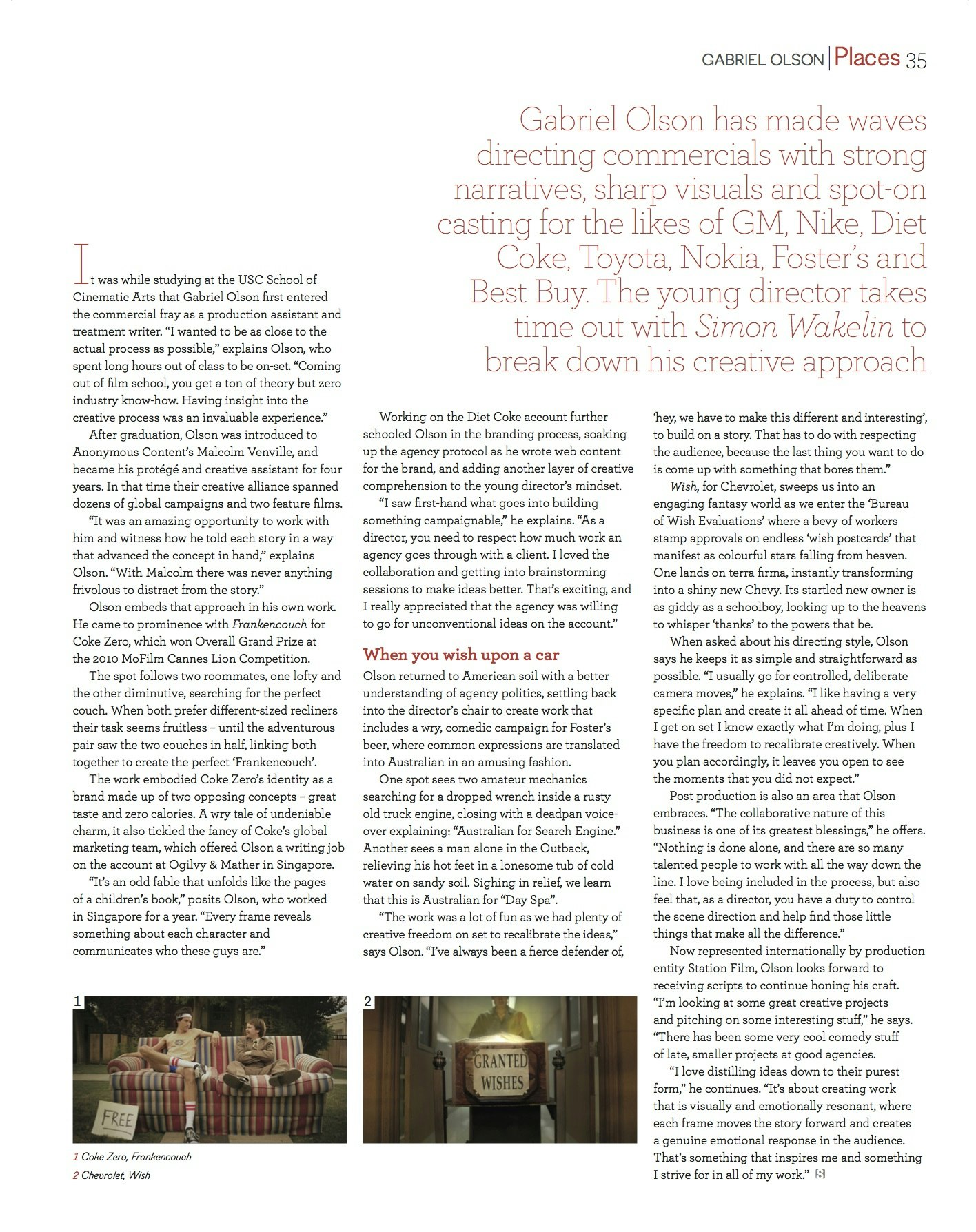Gabriel Olson is a filmmaker, director, and producer working across award-winning commercials, documentaries, and narrative films. A graduate of USC’s School of Cinematic Arts, Gabriel launched his career under the mentorship of Anonymous Content’s Malcolm Venville, contributing to dozens of global campaigns for clients including Nike, Honda, Toyota, NASDAQ, and the California Lottery, as well as two feature films.